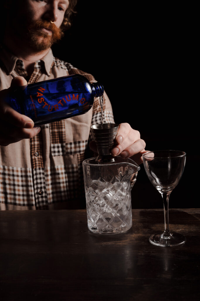 Burnt Maidenii Yuzu Vermouth with miso adds depth and warmth, balanced with a dash of lemon amaro and bitters. Finished with a delicate drop of black garlic oil and a freshly foraged nasturtium petal, taking you from citrus-led clarity to savoury complexity.